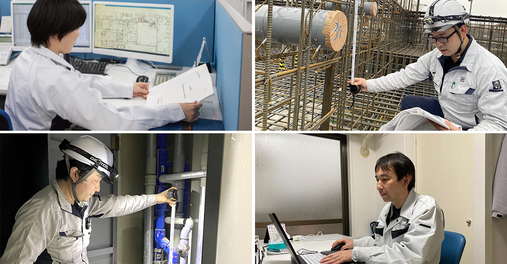 主な業務は現場施工管理・配管施工図作成です。 衛生、空調、換気設備の施工管理をしていくなかで、いかに『過ごしやすい環境』を提供するにはどうしたらいいかを考え、日々の仕事に当っています。また、『カタチ』として残る建造物を完成させる事にやりがいを感じています。
